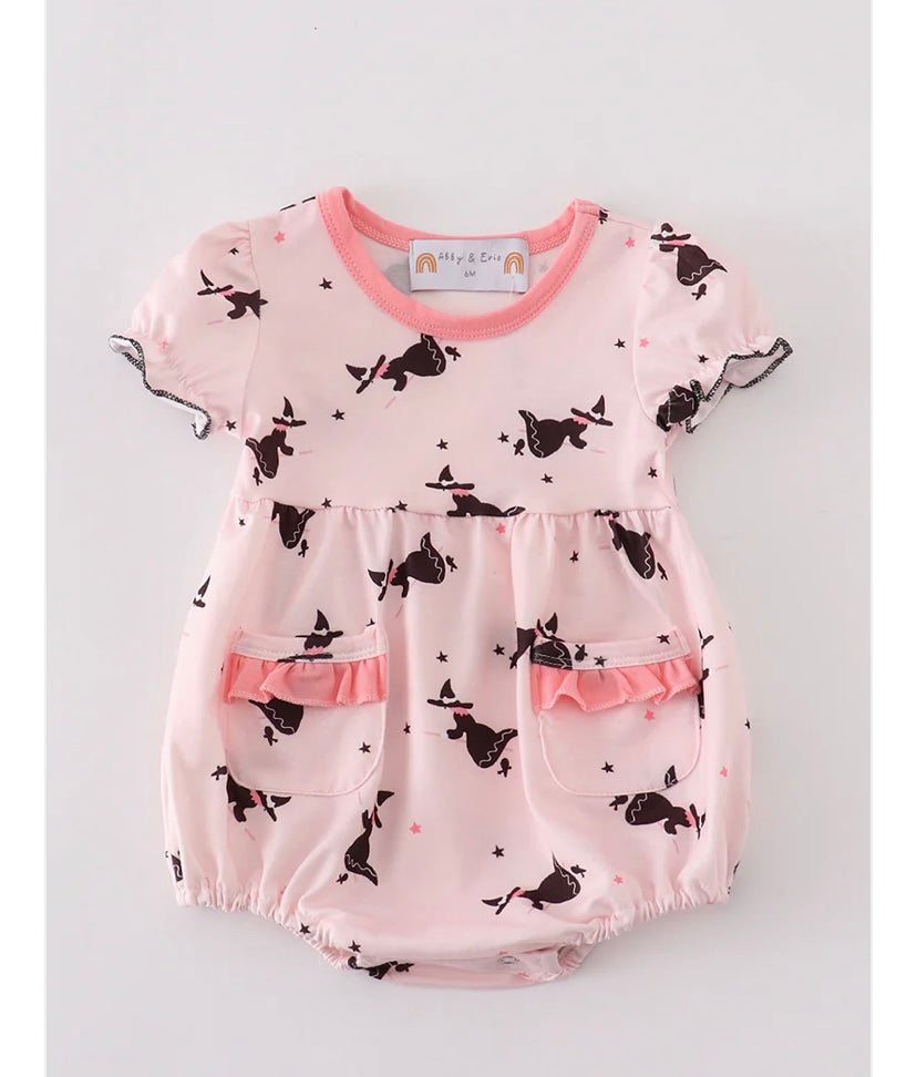 This witch print girl bubble is sure to make a statement! With its playful pink witch print, your little one will stand out in style. Perfect for any occasion, this bubble offers both comfort and cuteness.