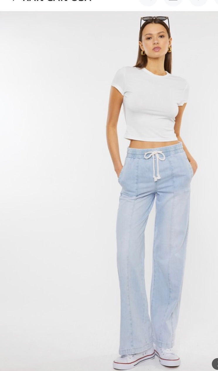 Kancan wide leg drawstring denim pants